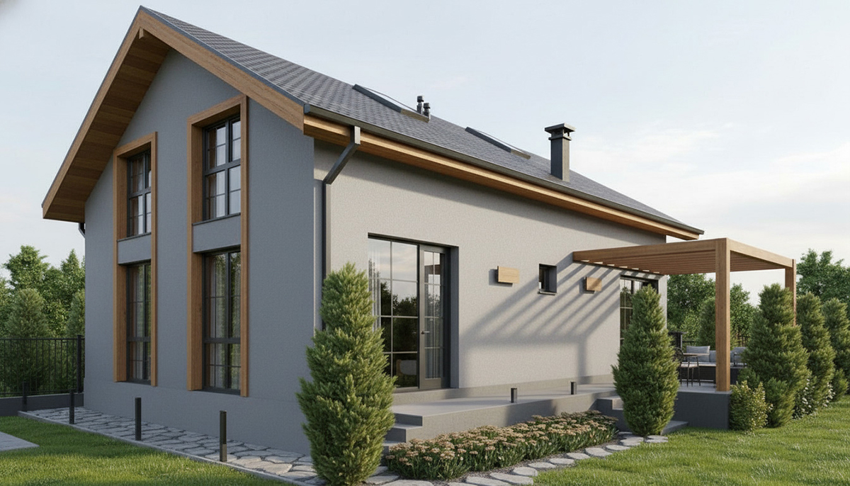 Проектът представлява еднофамилна жилищна сграда, разположена в кв. Овча купел, гр. София, в утвърдена градска среда с преобладаващо ниско застрояване. Къщата е реализирана със сглобяема дървена конструкция и стени от SIP панели и е организирана на един надземен етаж, подпокривно ниво и частичен сутерен с външен достъп. Архитектурната концепция е насочена към създаване на място за уединение и комфорт, с ясна функционална организация, визуална връзка между нивата чрез емпоре и добри топло- и шумоизолационни характеристики, осигуряващи устойчивост и дългосрочно качество на обитаване.
